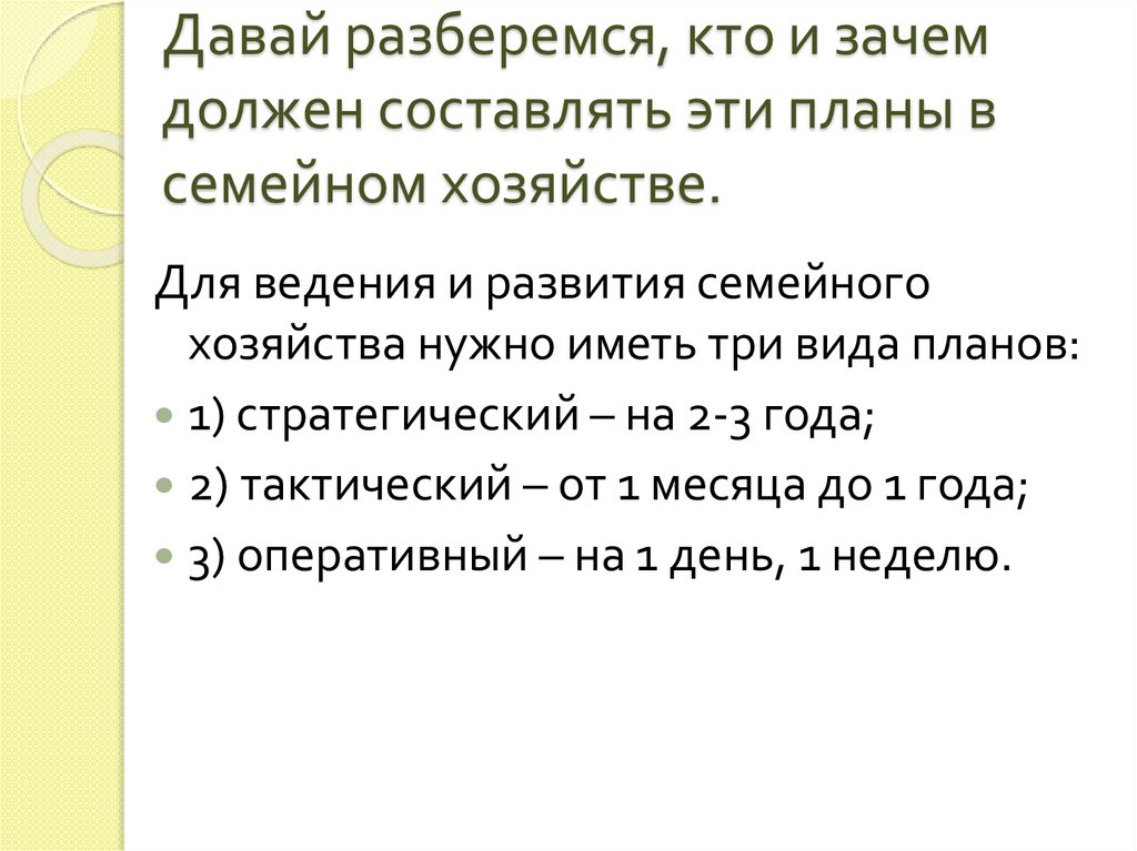 хозяйства нужно иметь три вида планов: