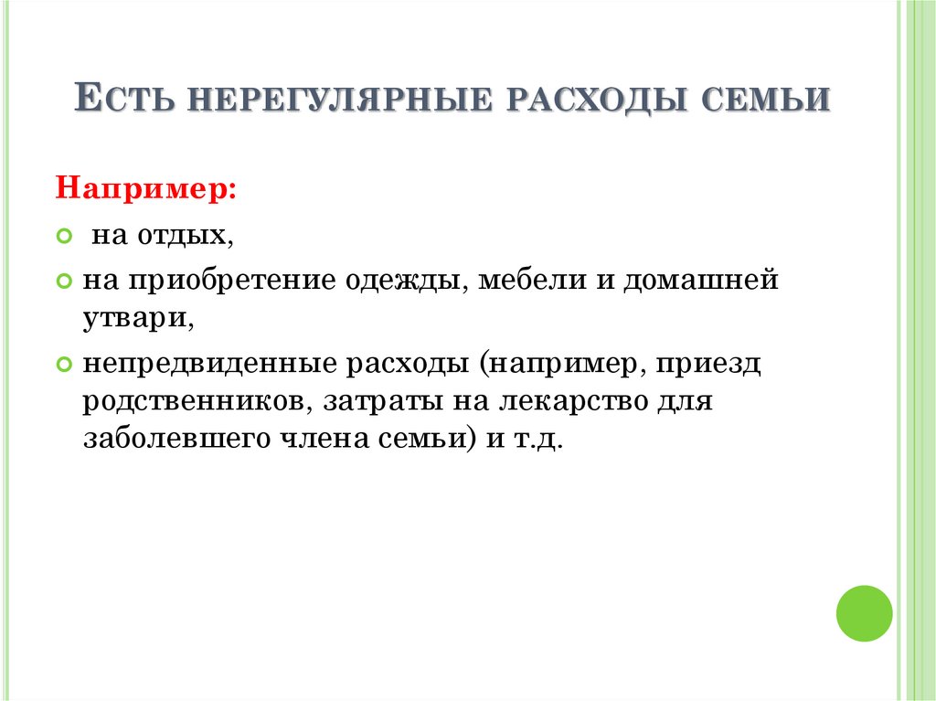 ЕСТЬ НЕРЕГУЛЯРНЫЕ РАСХОДЫ СЕМЬИНапример: