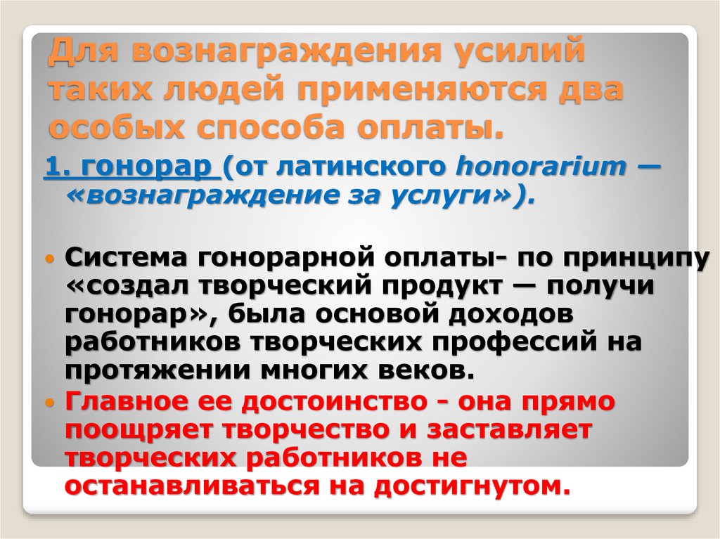 гонорарной оплаты—