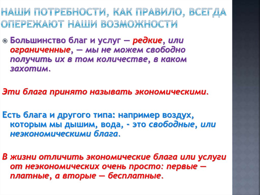 Большинство благ и услуг — редкие, илиограниченные, — мы не можем свободно