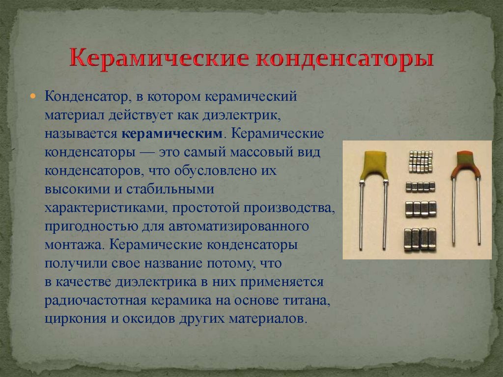 Конденсатор, в котором керамическийматериал действует как диэлектрик,