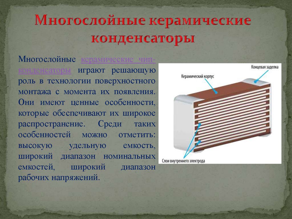 Многослойные керамические чипконденсаторы играют решающуюроль в технологии поверхностного