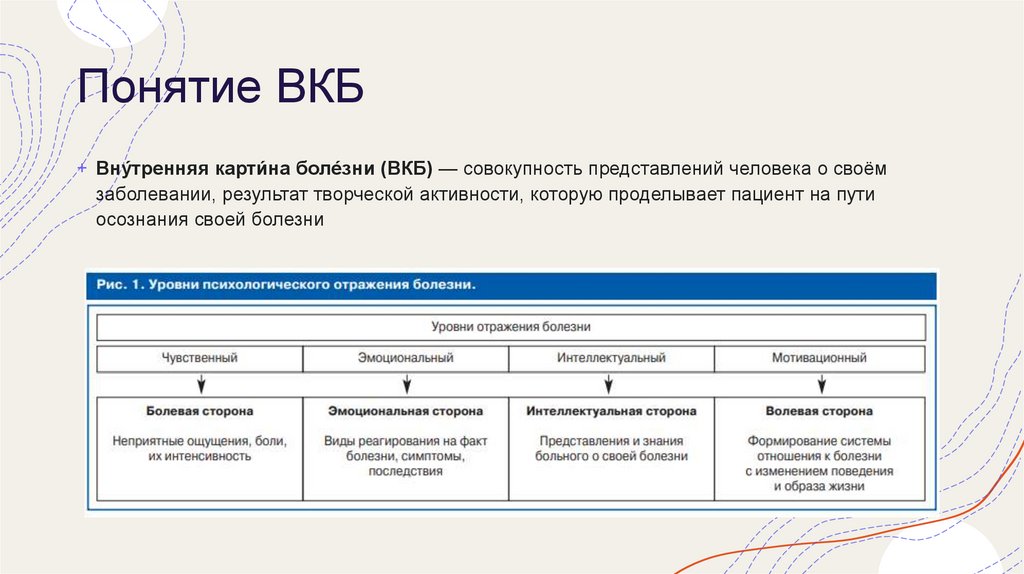 Понятие ВКБ+ Вну́тренняя карти́на боле́зни (ВКБ) — совокупность представлений человека о своём