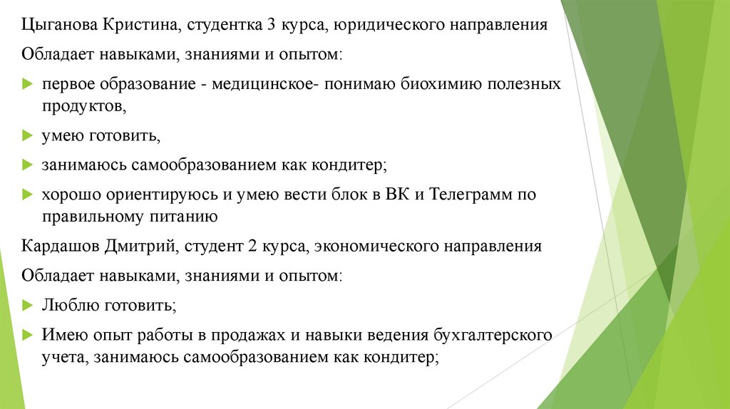 Цыганова Кристина, студентка 3 курса, юридического направленияОбладает навыками, знаниями и опытом: