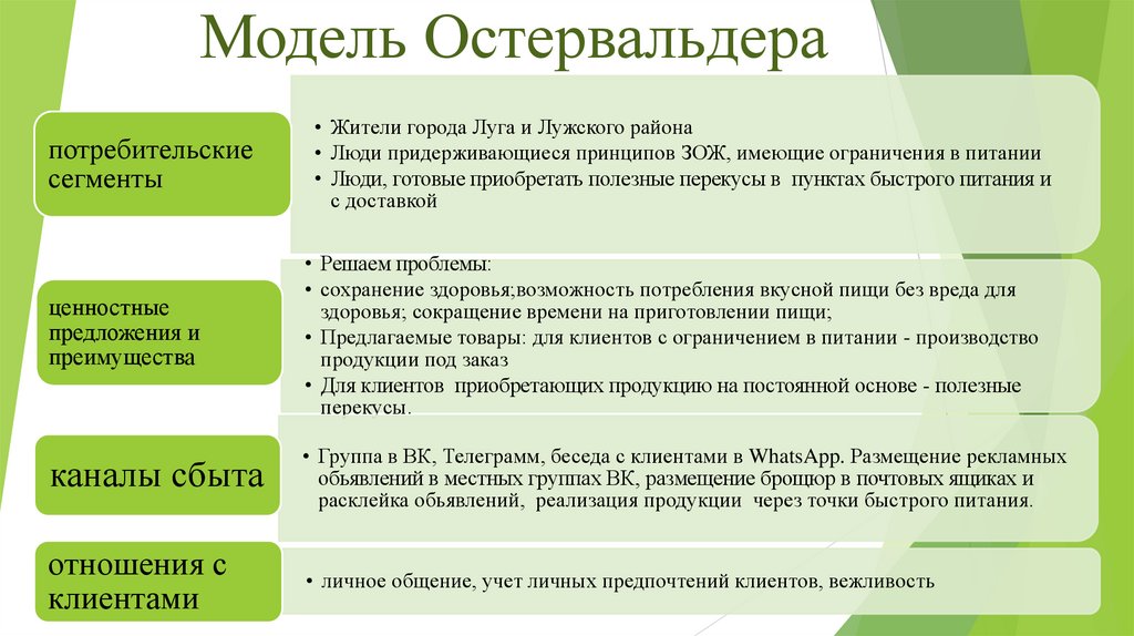 • Предлагаемые товары: для клиентов с ограничением в питании - производство