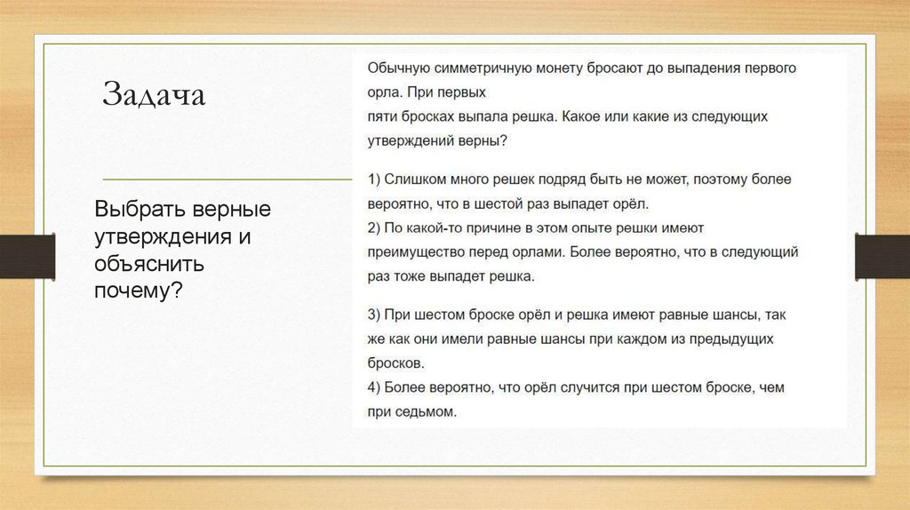 Задача классическойтеории вероятности