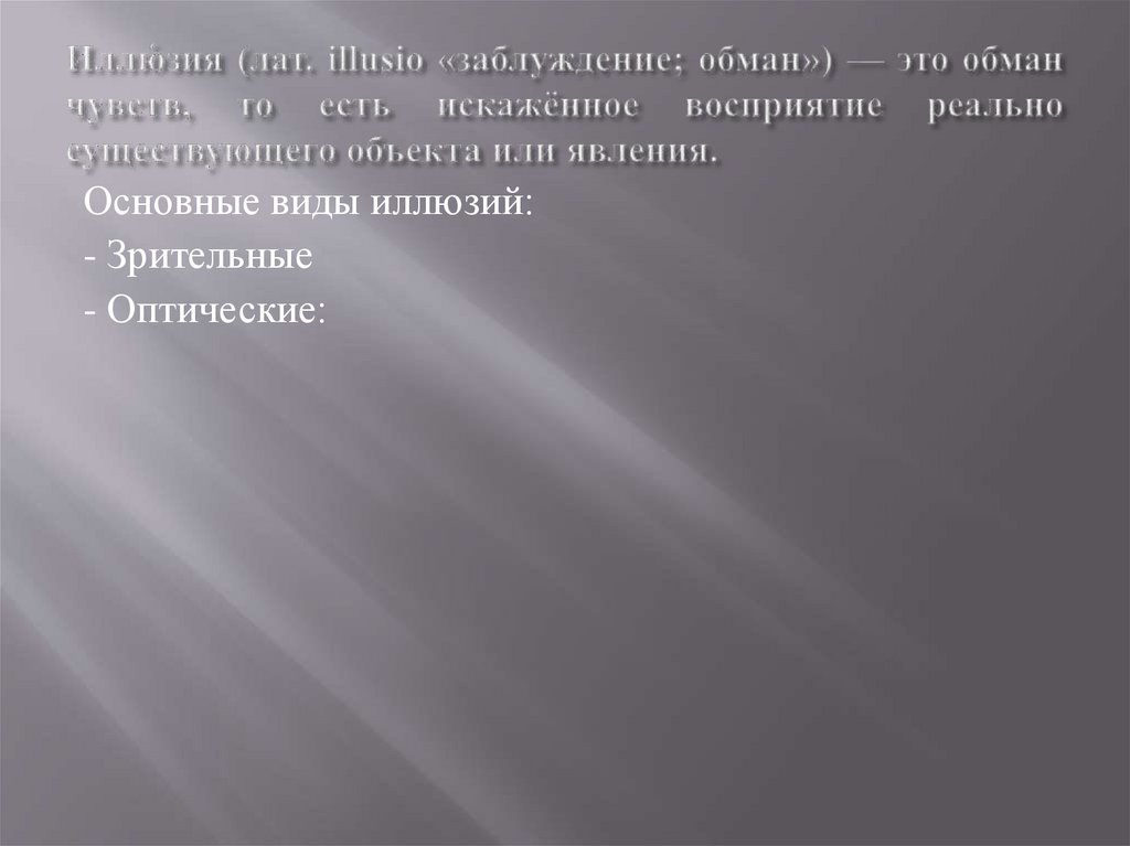 Основные виды иллюзий:- Зрительные
