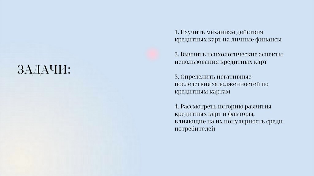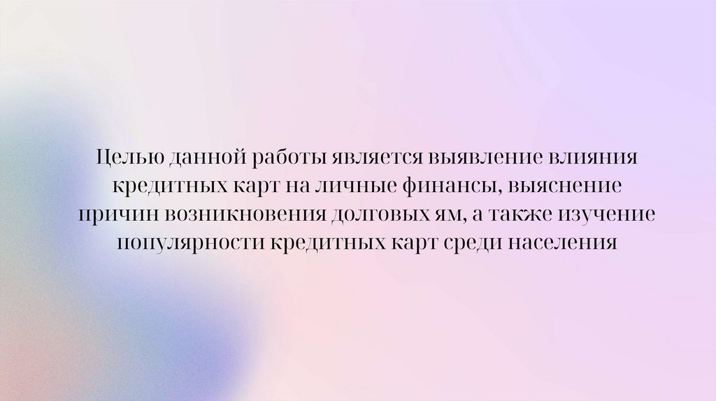 Целью данной работы является выявление влияниякредитных карт на личные финансы, выяснение