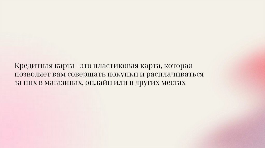 Кредитная карта - это пластиковая карта, котораяпозволяет вам совершать покупки и расплачиваться