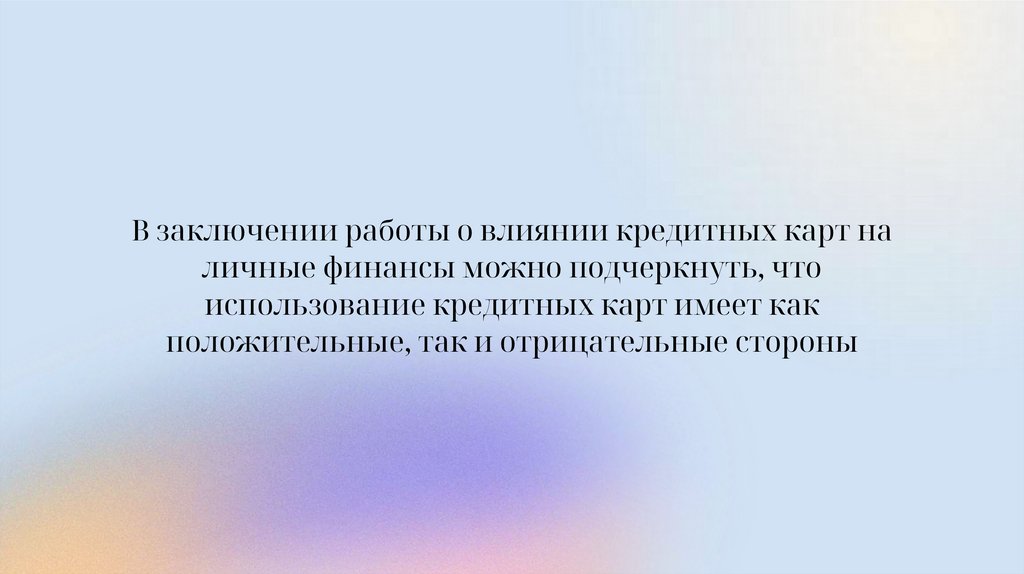В заключении работы о влиянии кредитных карт наличные финансы можно подчеркнуть, что