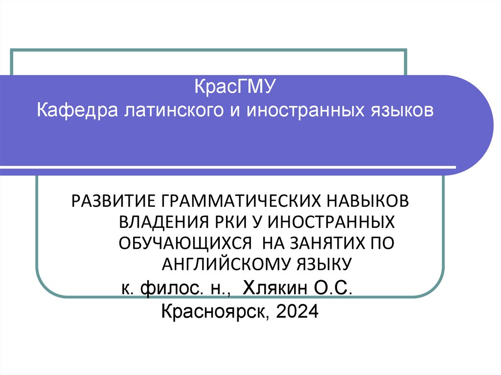 Развитие грамматических навыков владения рки у иностранных обучающихся на занятих по английскому языку