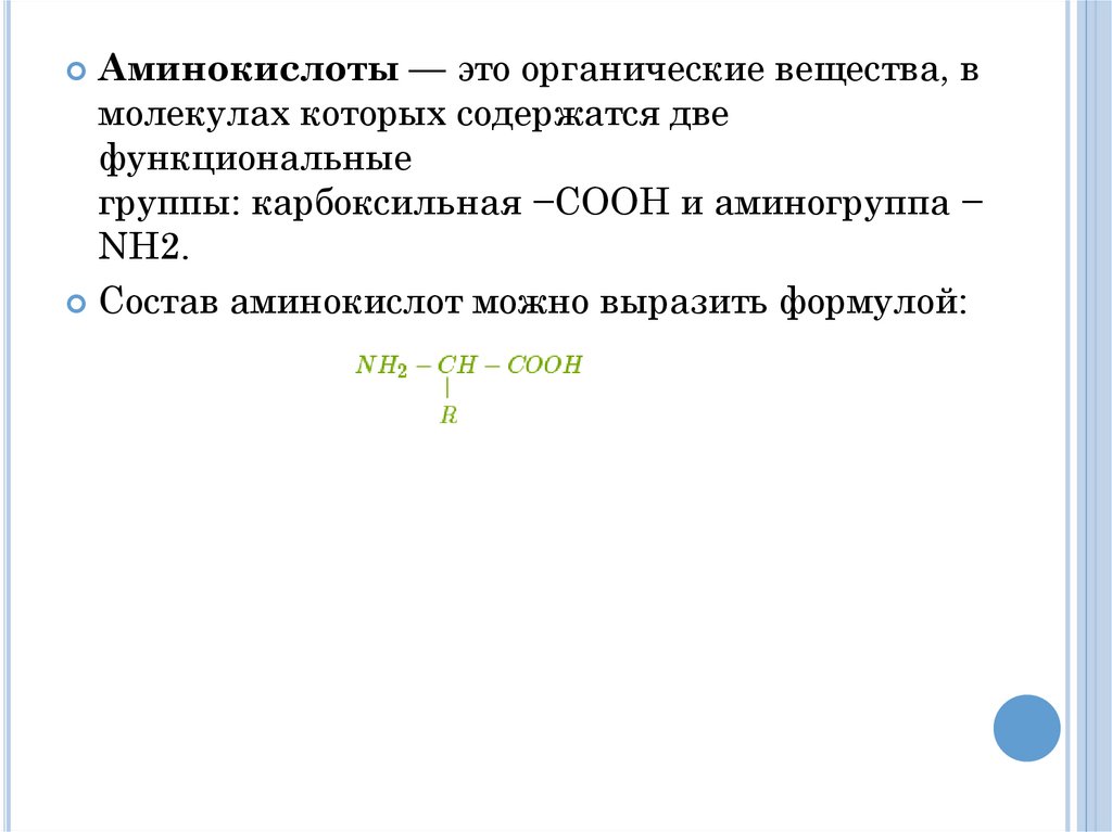 Аминокислоты — это органические вещества, вмолекулах которых содержатся две