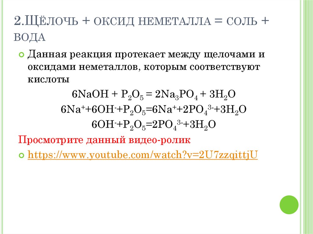2.ЩЁЛОЧЬ + ОКСИД НЕМЕТАЛЛА = СОЛЬ +ВОДА