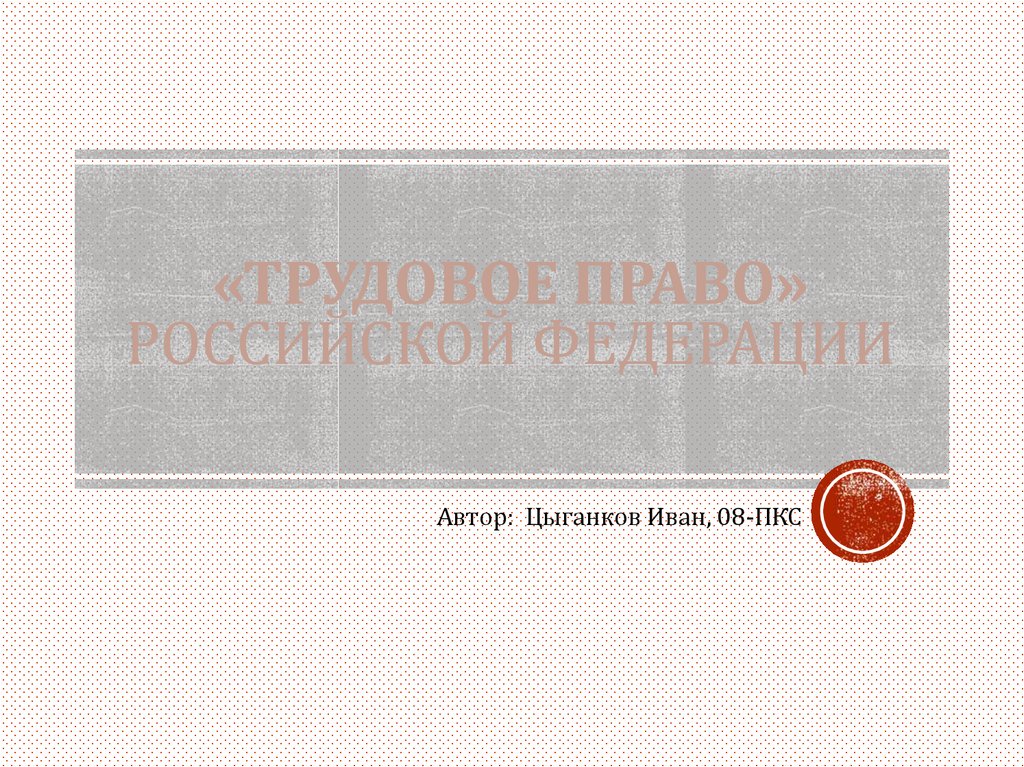 «ТРУДОВОЕ ПРАВО»РОССИЙСКОЙ ФЕДЕРАЦИИ