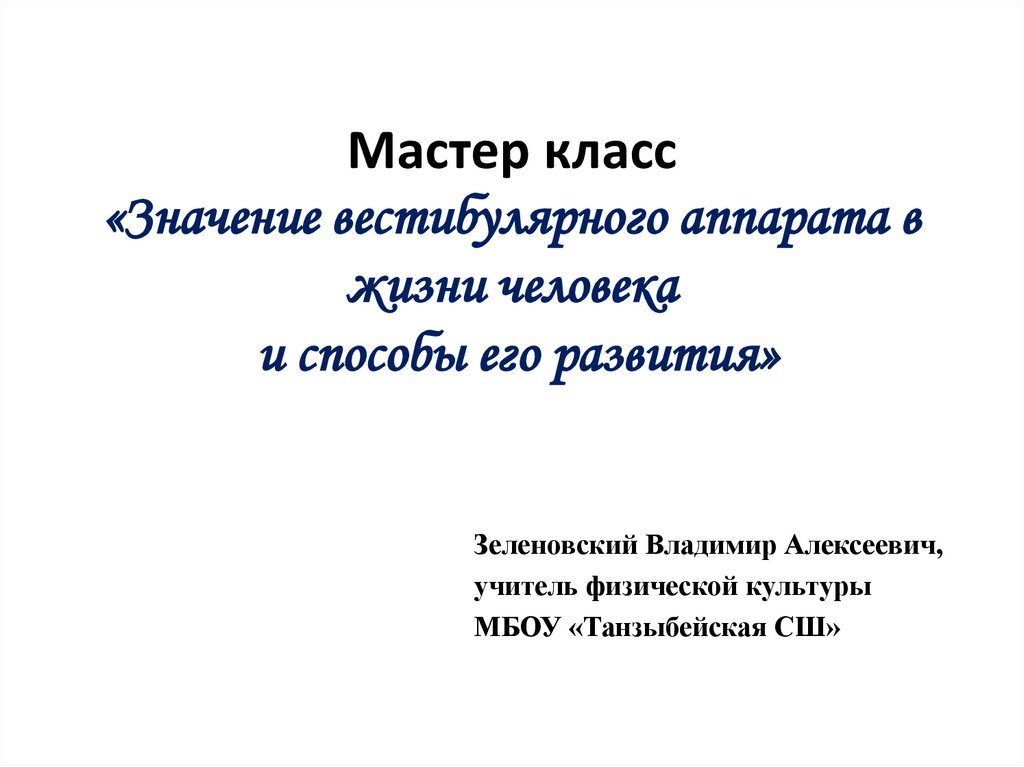 Мастер класс«Значение вестибулярного аппарата в