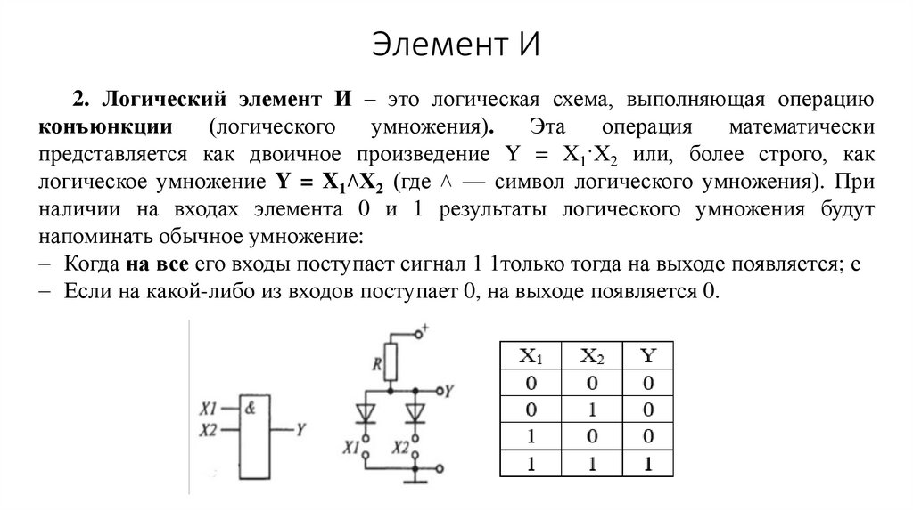 Элемент И2. Логический элемент И – это логическая схема, выполняющая операцию