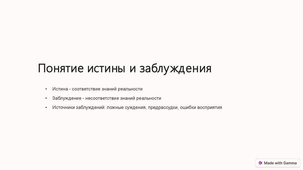 Понятие истины и заблужденияИстина - соответствие знаний реальности