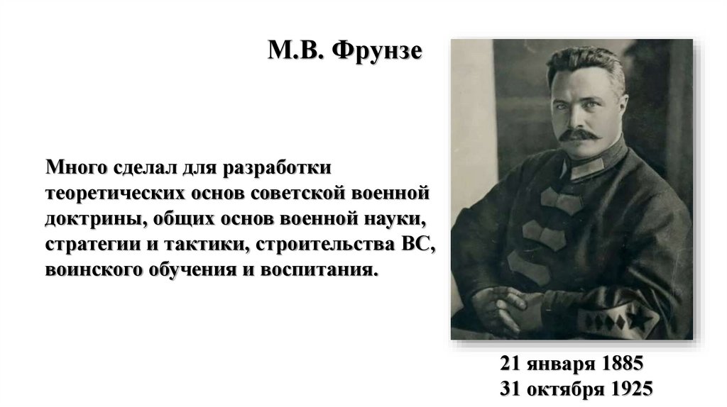 М.В. ФрунзеМного сделал для разработки