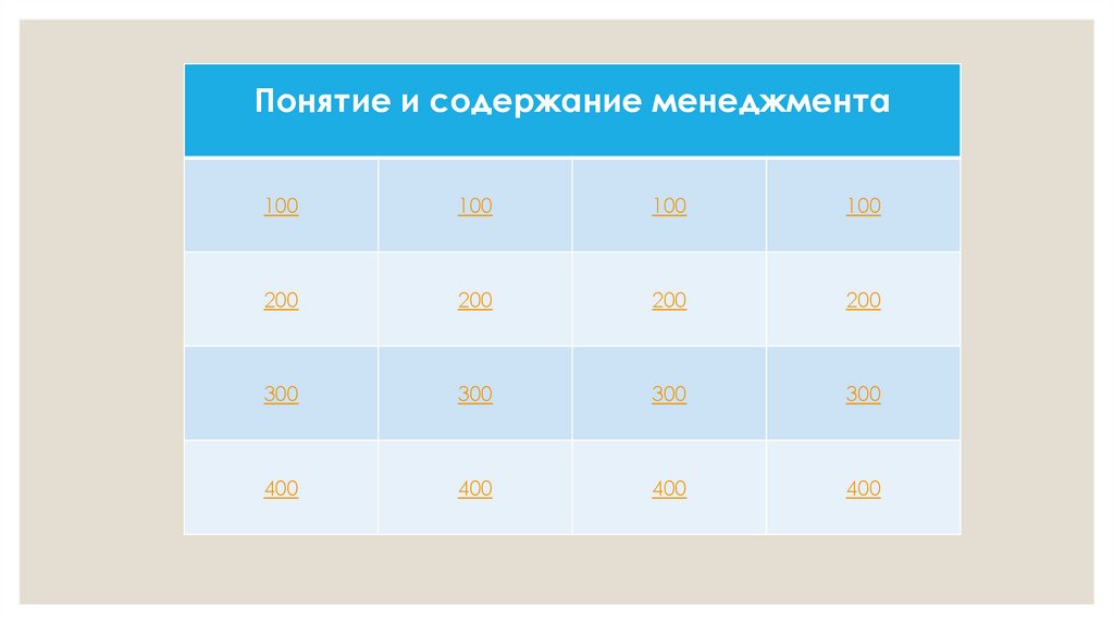 Своя игра "Понятие и содержание менеджмента"
