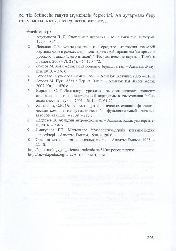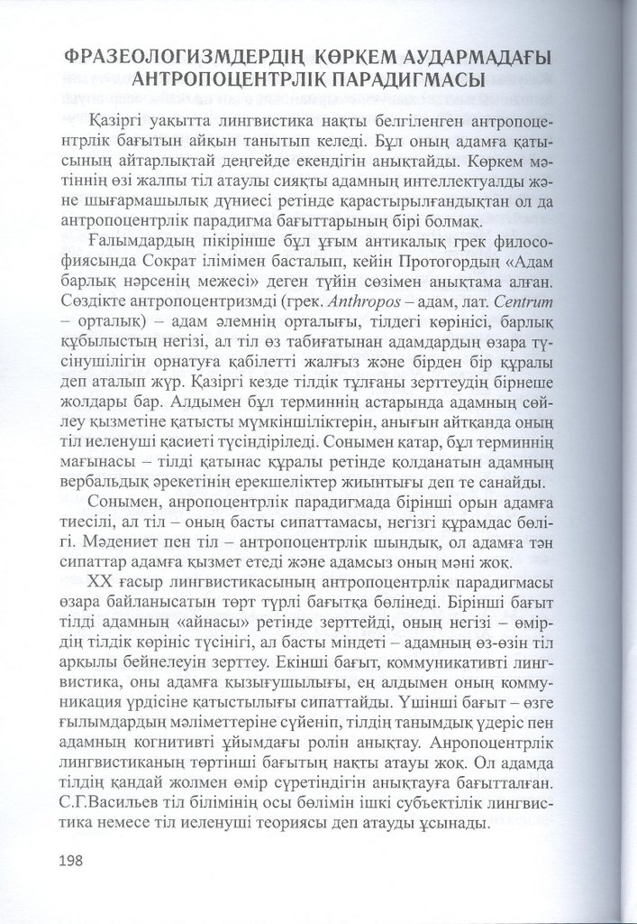 Фразеологизмдердің көркем аудармадағы антропоцентрлік парадигмасы