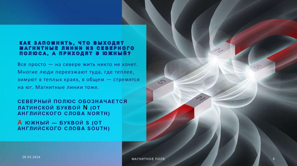 полюс, а на юге — северный. Такие