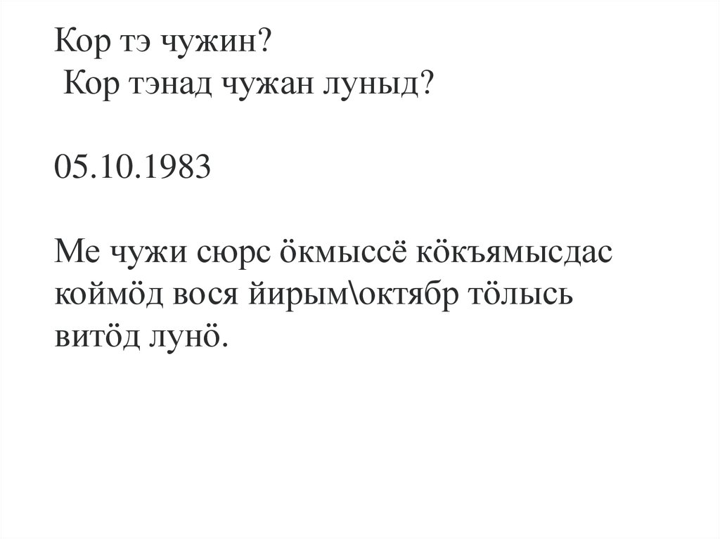 Вася ёрт. Коми му менам Чужанiн.