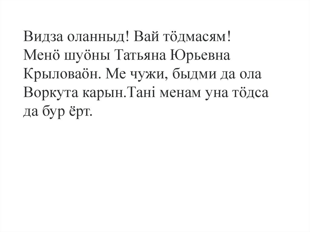 Видза оланныд! Вай тӧдмасям!Менӧ шуӧны Татьяна Юрьевна