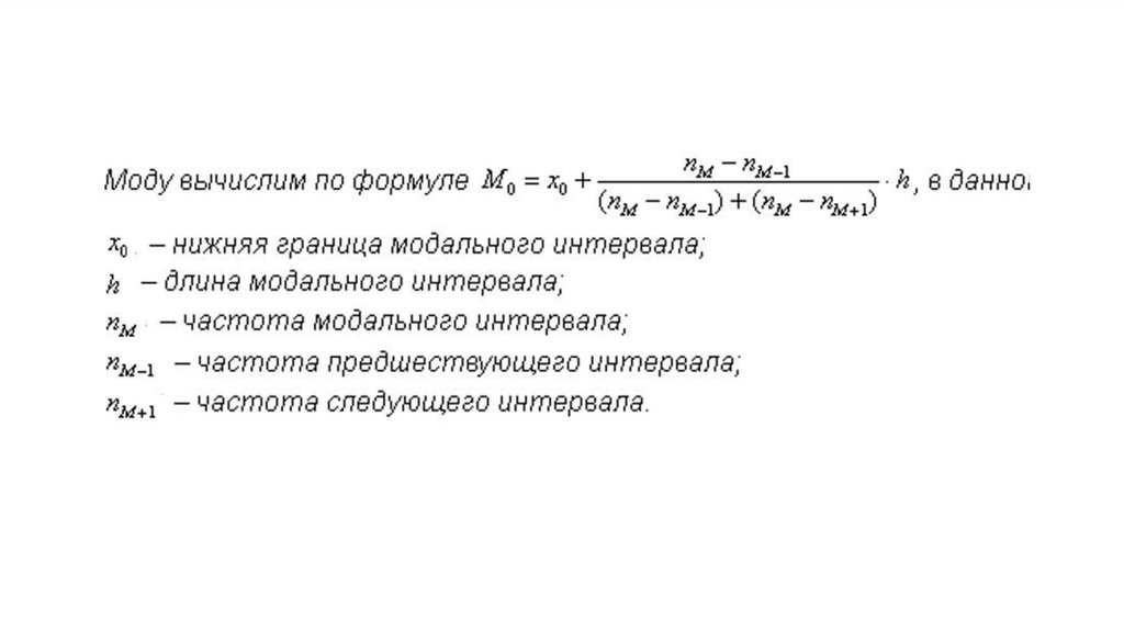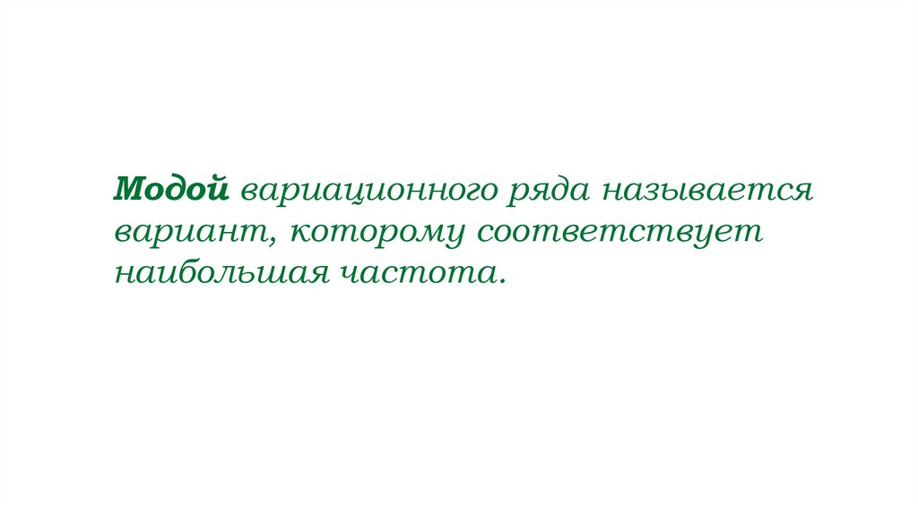 Моду дискретного вариационного ряда находят согласно правилам:1. В случае, когда все значения в выборке встречаются одинаково часто,