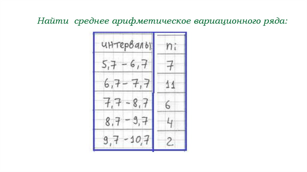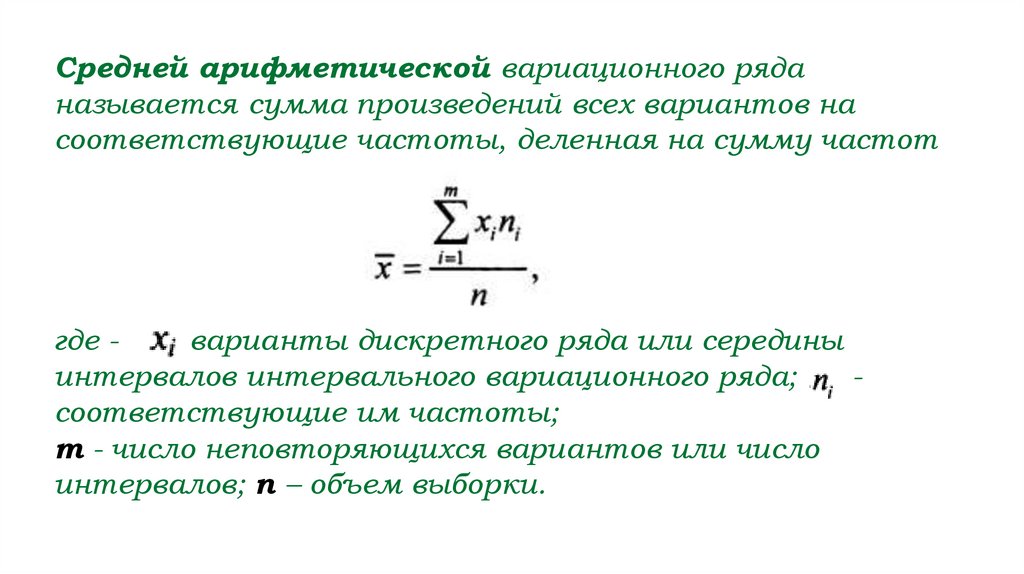 Средней арифметической вариационного ряданазывается сумма произведений всех вариантов на