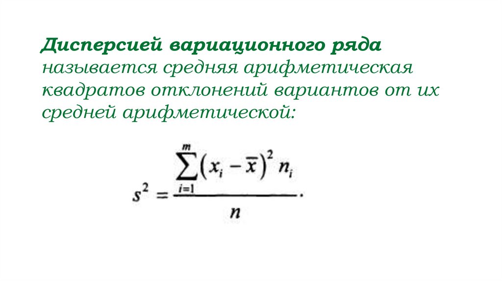 Дисперсией вариационного ряданазывается средняя арифметическая