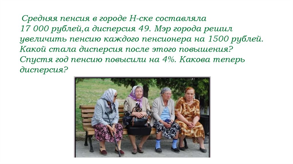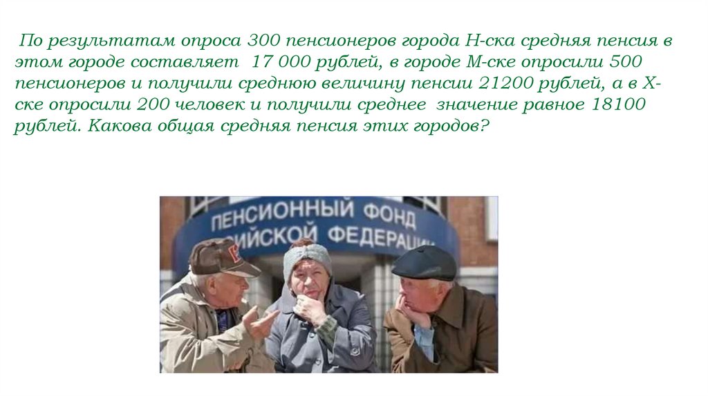 Средняя пенсия в городе Н-ске составляла17 000 рублей, мэр города решил увеличить пенсию