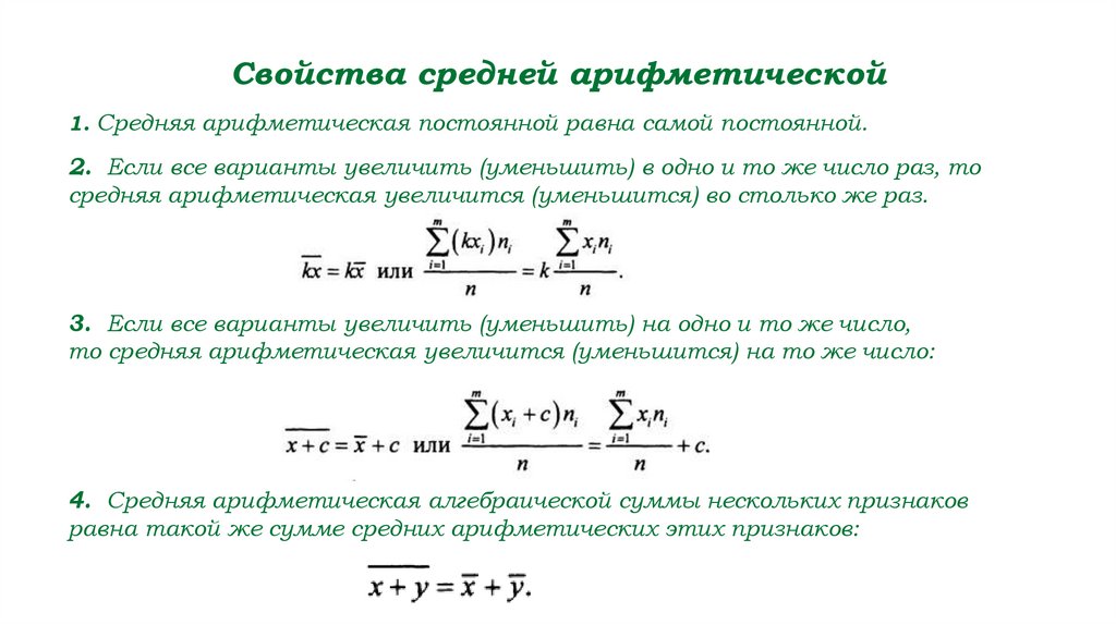 Cвойства средней арифметической1. Средняя арифметическая постоянной равна самой постоянной.
