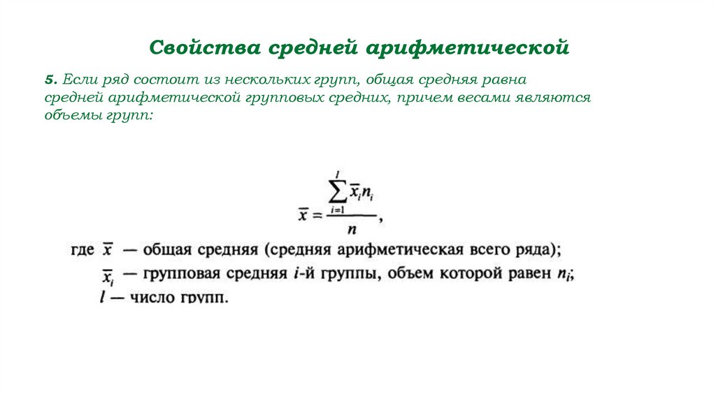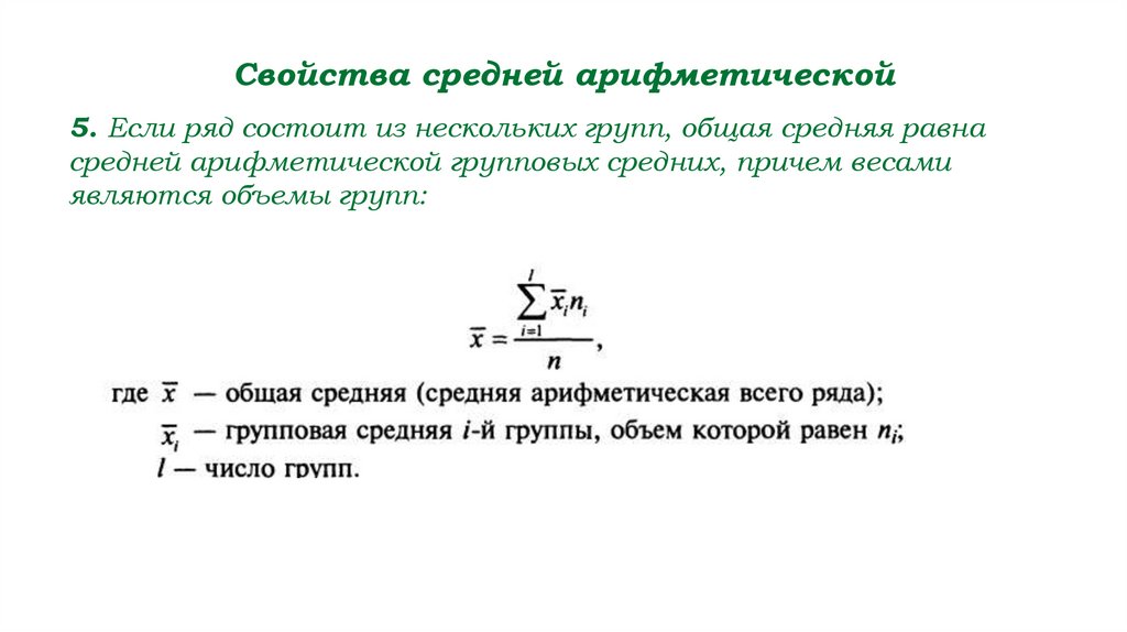 Cвойства средней арифметической5. Если ряд состоит из нескольких групп, общая средняя равна