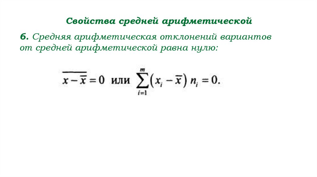 Cвойства средней арифметической6. Cредняя арифметическая отклонений вариантов