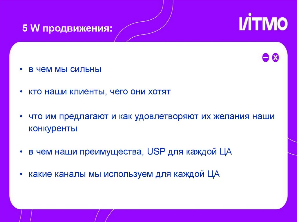 5 W продвижения:• в чем мы сильны