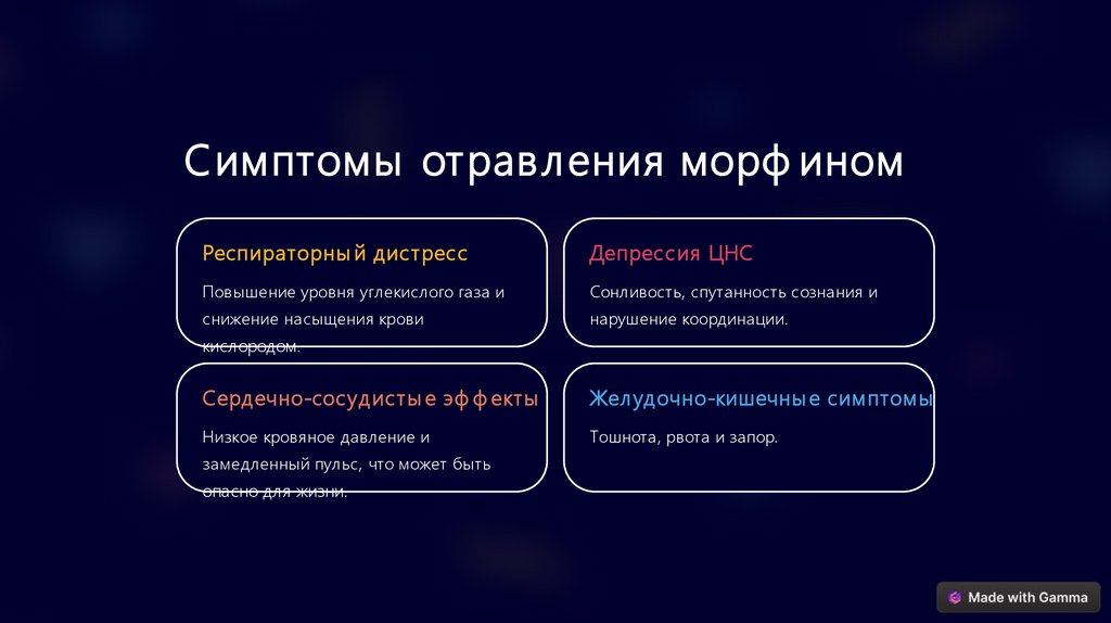 Симптомы отравления морф иномРеспираторны й дист ресс