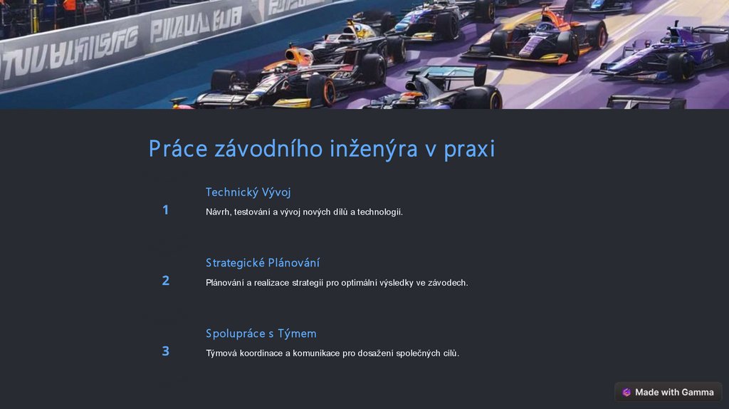Plánování a realizace strategií pro optimální výsledky ve závodech.