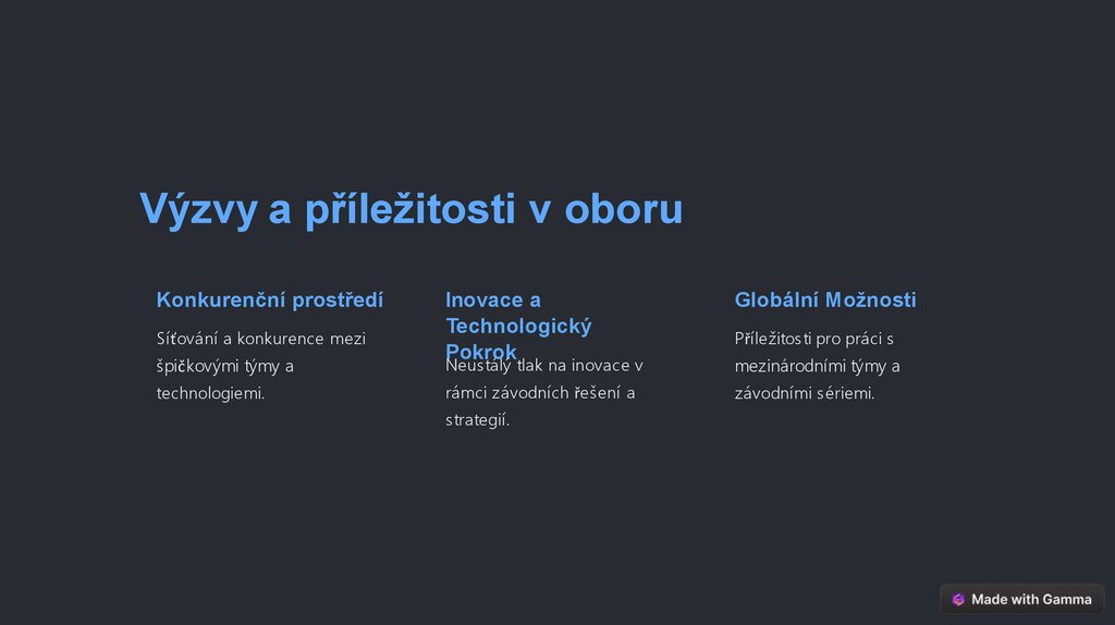 Výzvy a příležitosti v oboruKonkurenční prostředí