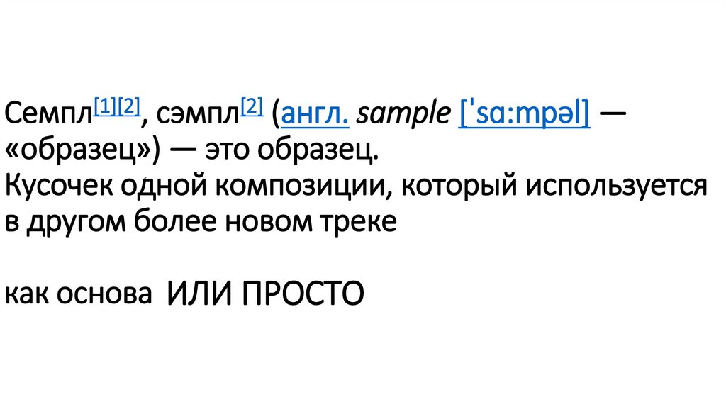Семпл[1][2], сэмпл[2] (англ. sample [ˈsɑ:mpəl] —«образец») — это образец.