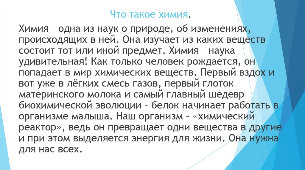 Что такое химия.Химия – одна из наук о природе, об изменениях,