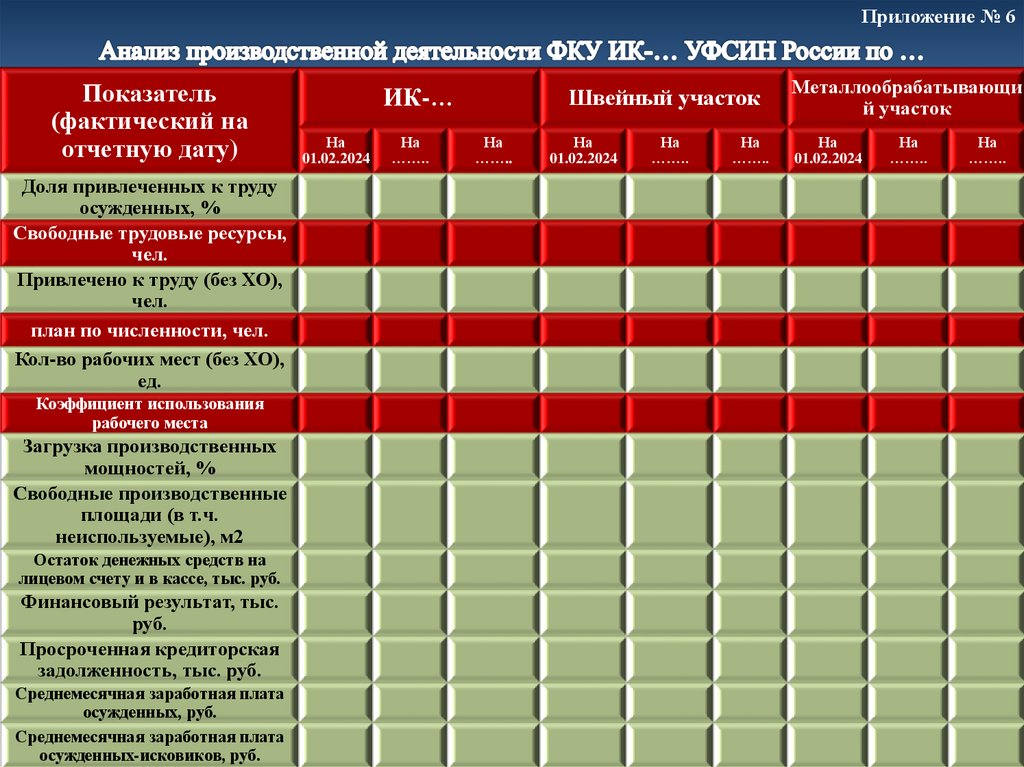 Анализ производственной деятельности ФКУ. Приложение № 6