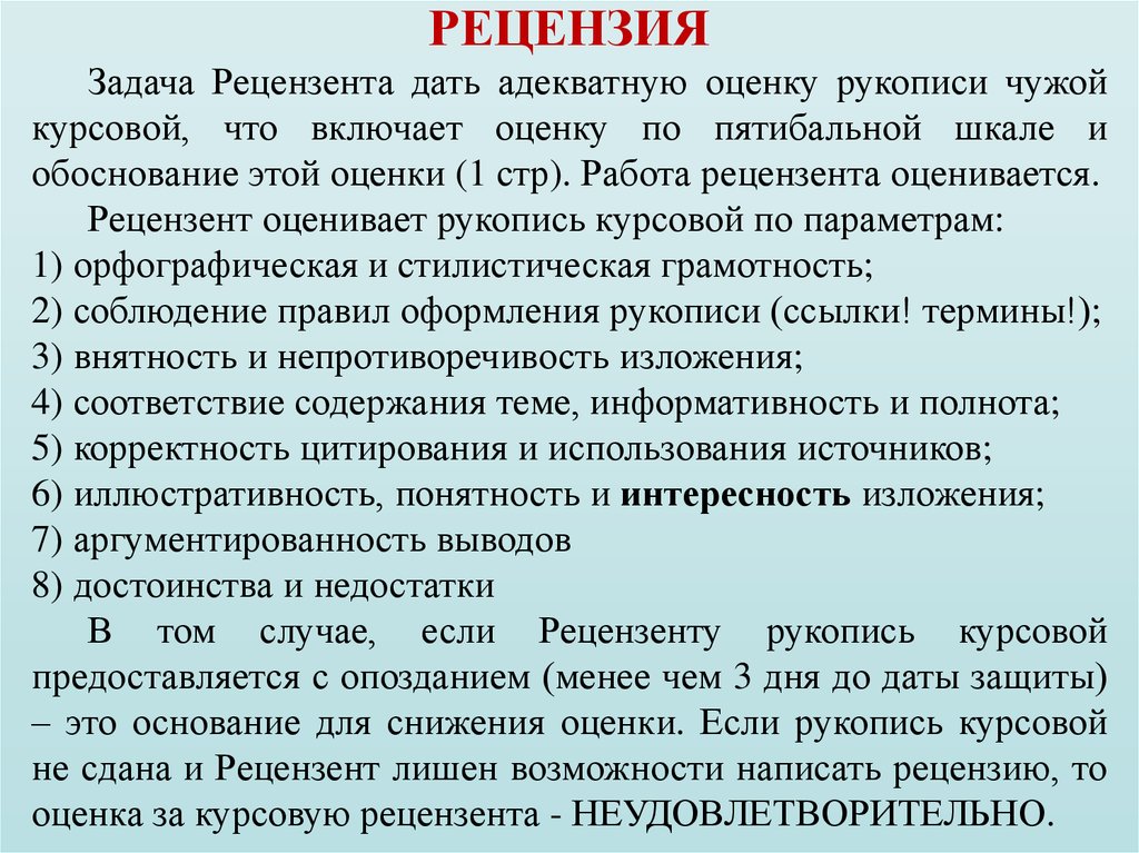 обоснование этой оценки (1 стр). Работа рецензента оценивается.