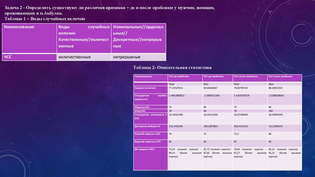 (мужчины/женщины), вес (кг), частота сердечных сокращений (ЧСС, уд/мин), обхват