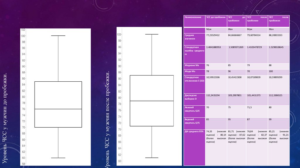 2)пробежка влияет на уровень ЧСС как у мужчин, так и у женщин;