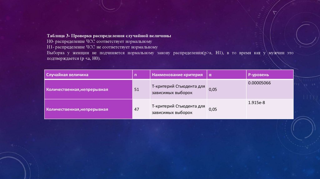 распределения Гаусса(p>a, H1), в то время как у мужчин наоборот (p