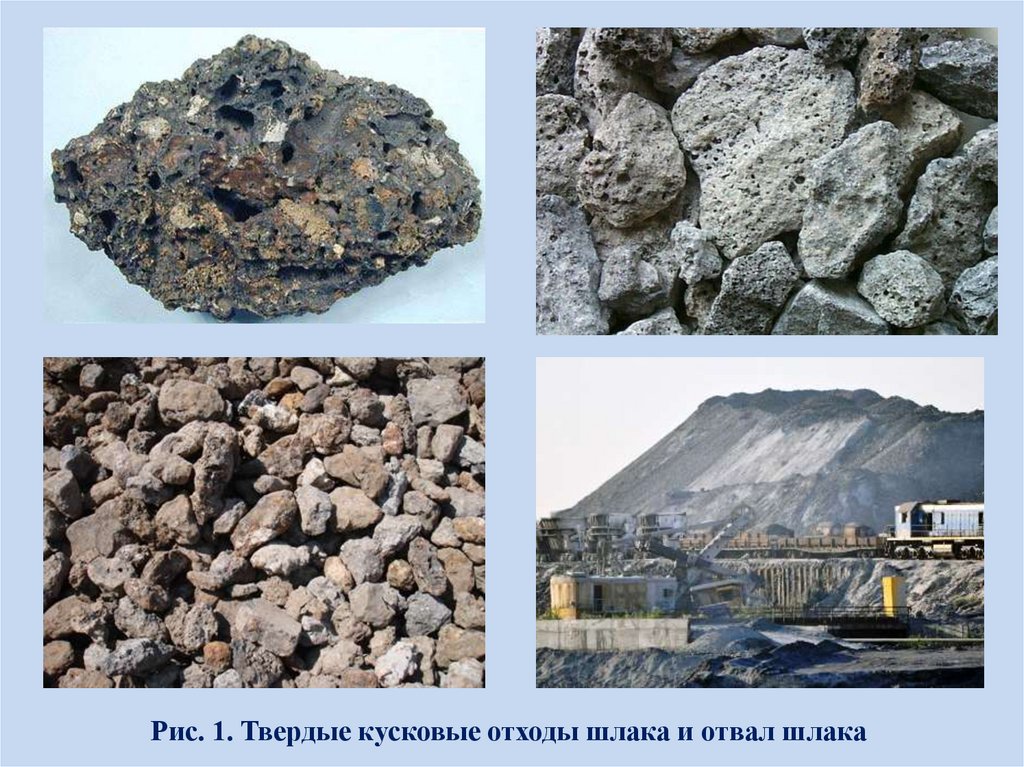 Рис. 1. Твердые кусковые отходы шлака и отвал шлака4.