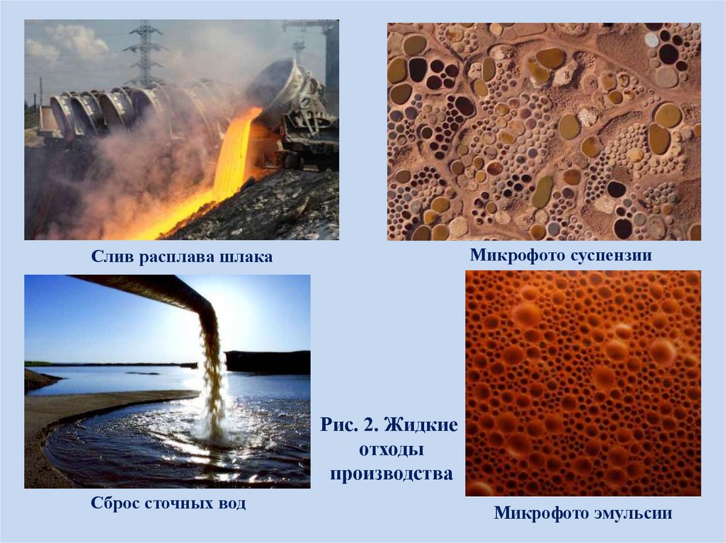 • жидкости – расплавы, растворы, суспензии, эмульсии, шламы (грязи) – менее пригодны для утилизации;