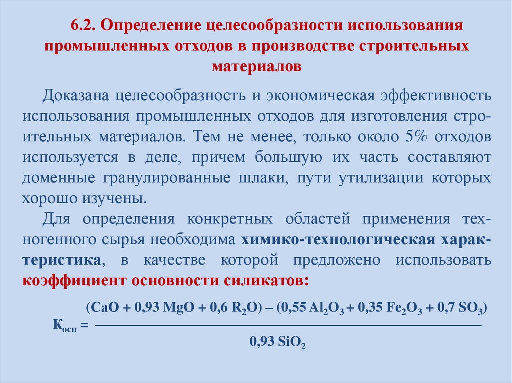 6.2. Определение целесообразности использованияпромышленных отходов в производстве строительных