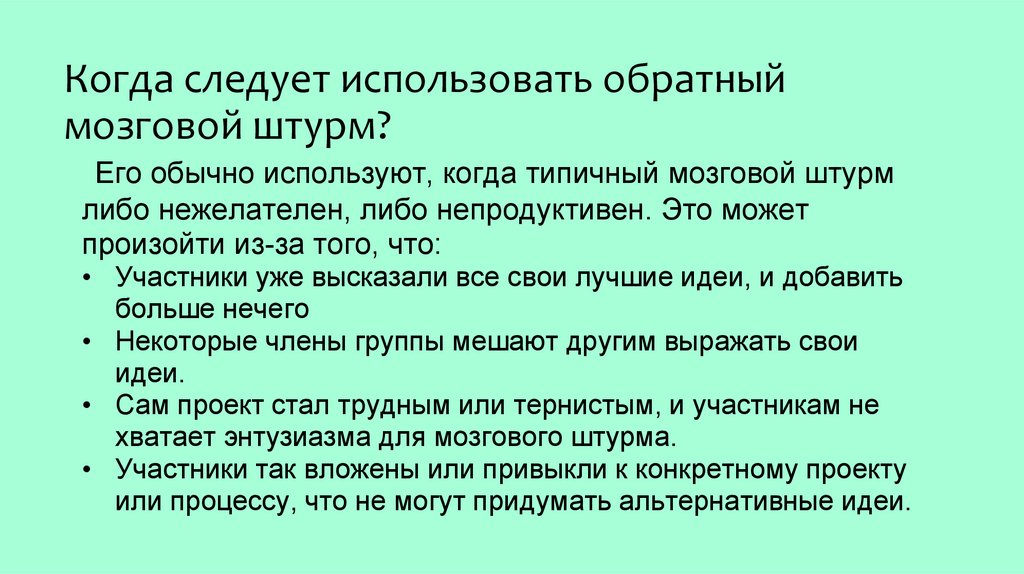 Когда следует использовать обратныймозговой штурм?