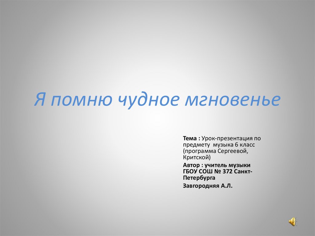 Я помню чудное мгновеньеТема : Урок-презентация по